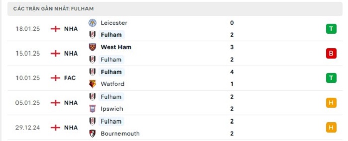 - Phong độ Fulham
