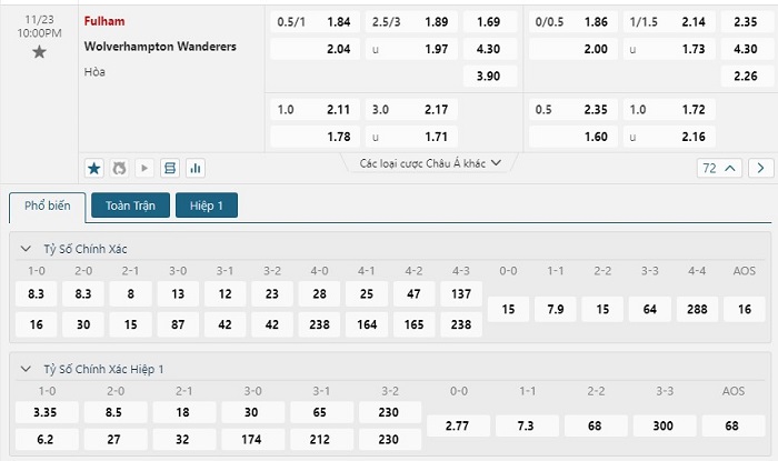 Soi kèo châu Á, kèo chấp Fulham vs Wolves