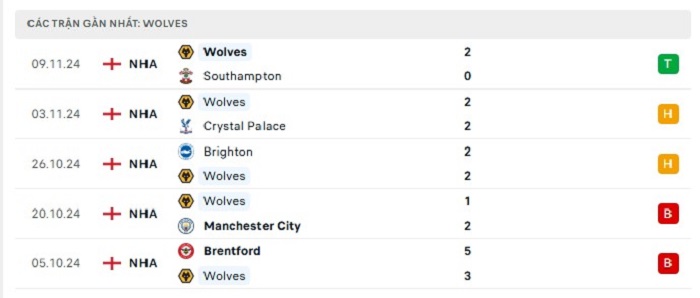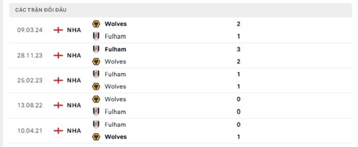 Bảng bóng đá trận đấu Fulham vs Wolves