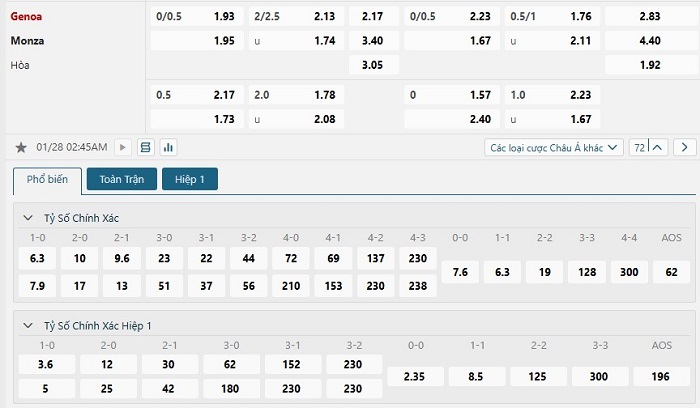 Soi kèo châu Á, kèo chấp Genoa vs Monza