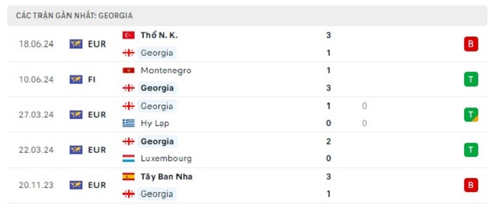 Phong độ gần đây Georgia vs Cộng hòa Séc