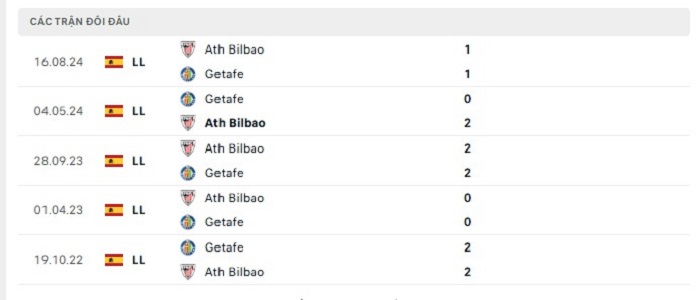Phong độ gần đây Getafe vs Atheltic Bilbao