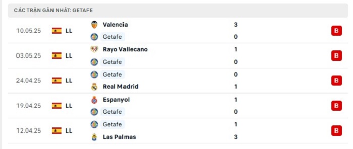 - Phong độ Getafe