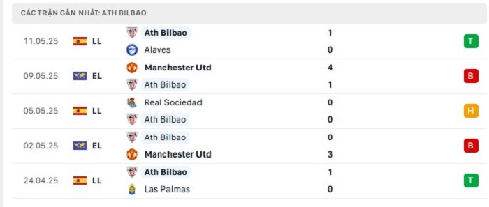 - Phong độ Atheltic Bilbao