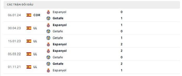Trong quá khứ những trận đối đầu giữa Getafe và Espanyol gần đây tỷ số ghi được trong trận cũng không cao khi 2 trận gần nhất đều khép lại với kết quả 1-0 chung cuộc. Ở mùa giải Getafe hàng công thi đấu không tốt nhưng họ cũng được đánh giá cao một hàng thủ thi đấu khá chắc chắn cho mình, trong khi đó với Espanyol thì khả năng ghi bàn trên sân khách của họ ở mùa giải đang rất tệ do vậy mà khó có thể kỳ vọng tới một trận đấu có tỷ số cao ghi được cho cả hai đội.
