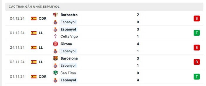 Bảng bóng đá trận đấu Getafe vs Espanyol