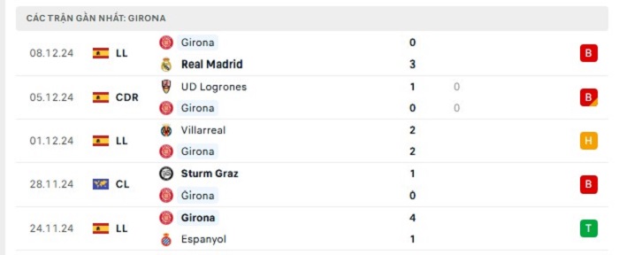 Bảng bóng đá trận đấu Girona vs Liverpool