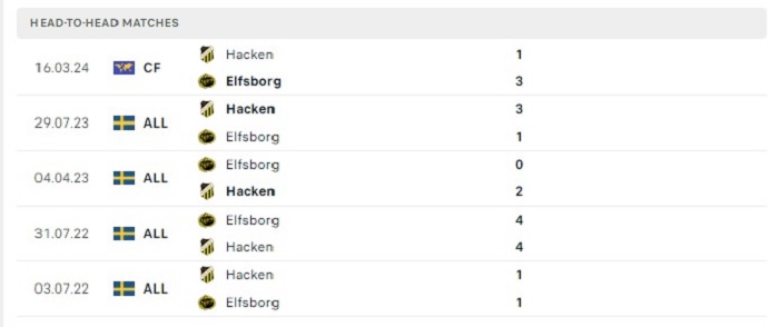 Lịch sử đối đầu của hai đội trong nhiều năm qua có được sự cân bằng khi mỗi bên thắng 3 trong 10 lần gặp nhau trước đây, tuy nhiên như đã nói thì Elfsborg ở giải đấu không thành công trên sân khách với 6 lần đã nhận thất bại theo kèo châu Âu cả trận trong khi với Hacken họ lại có được những thành công tại tổ ấm của mình. Bởi vậy đặt niềm tin vào Hacken theo mức kèo châu Âu cả trận cũng là điều có thể hiểu được