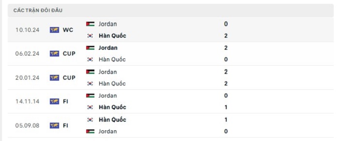 Bảng bóng đá trận đấu Hàn Quốc vs Jordan