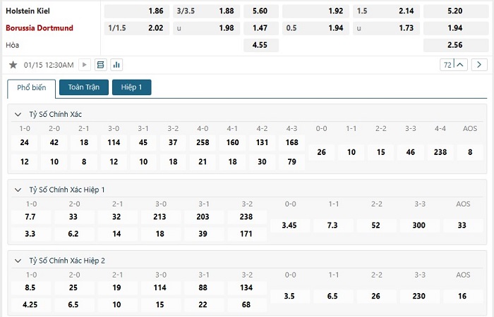 Soi kèo tỷ số Holstein Kiel vs Borussia Dortmund
