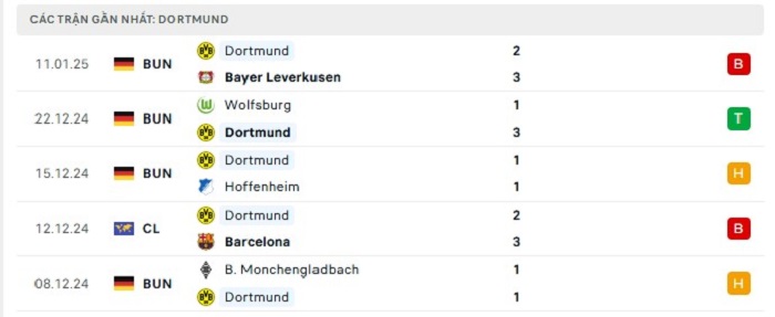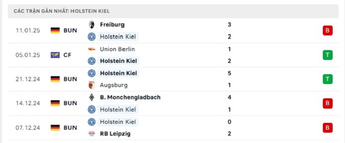 Phong độ gần đây Holstein Kiel vs Borussia Dortmund