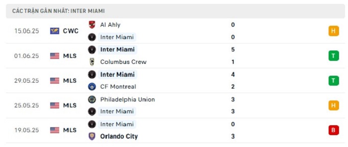 - Phong độ Inter Miami