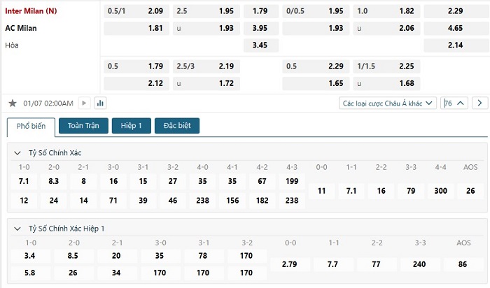 - Dự đoán tỉ số trận đấuInter Milan vs AC Milan