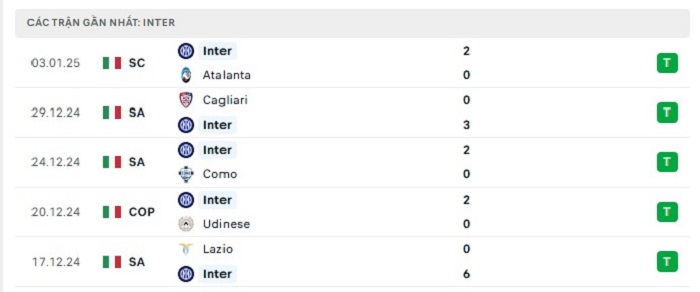- Phong độ Inter Milan