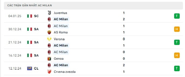 Phong độ gần đây Inter Milan vs AC Milan