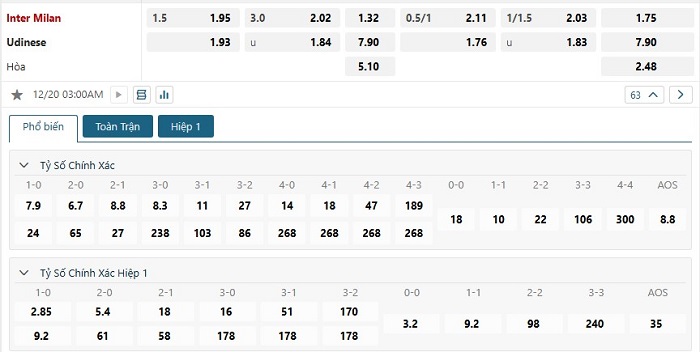 - Dự đoán tỉ số trận đấuInter Milan vs Udinese