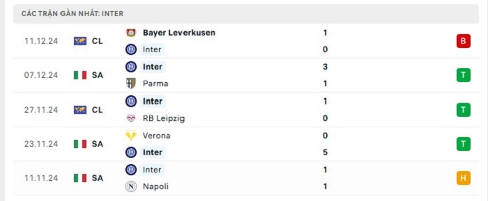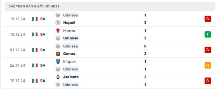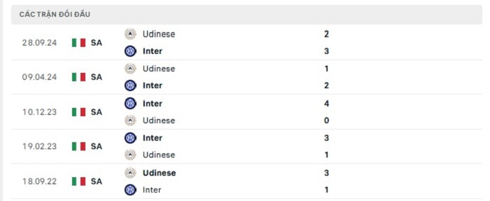 Bảng bóng đá trận đấu Inter Milan vs Udinese