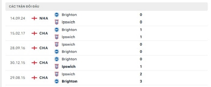 Bảng bóng đá trận đấu Ipswich vs Brighton