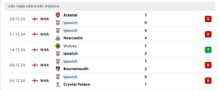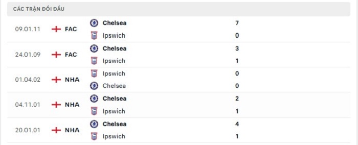 Bảng bóng đá trận đấu Ipswich vs Chelsea