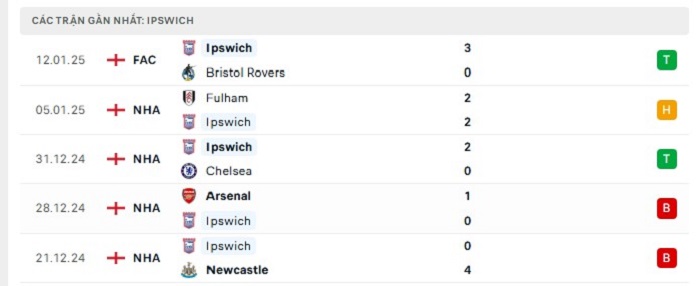 Lịch sử đối đầu của Ipswich vs Manchester City