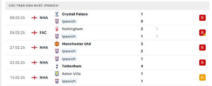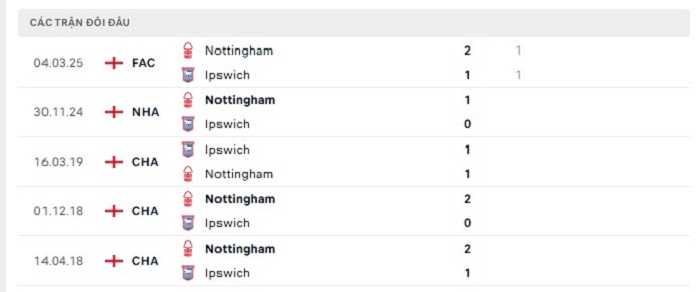 Bảng bóng đá trận đấu Ipswich vs Nottingham