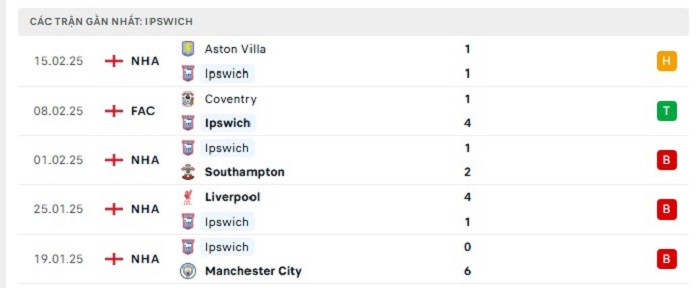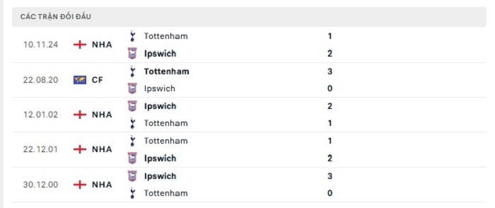 Phong độ gần đây Ipswich vs Tottenham