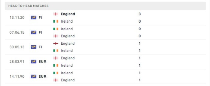 Có thể nhận thấy được Ireland vốn vẫn là một đối thủ rất khó chơi với đội tuyển Anh, thực tế là vậy bởi trong 5 lần gặp nhau gần đây nhất của hai đội thì Ireland cũng mới chỉ thua 1 trận đấu trên sân của “Tam sư” trong khi 4 trận đấu còn lại họ đã có kết quả hoà kèo châu Âu cả trận. Đội tuyển Anh hiện tại lối chơi và sức mạnh vốn cũng không còn được sự đánh giá cao khi nhận tấm vé xuống hạng ở mùa trước, vì vậy mà khả năng hai đội bất phân thắng bại vẫn được kỳ vọng nhiều.