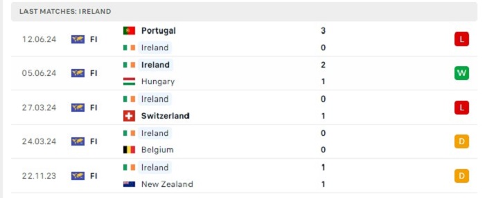 Phong độ gần đây Ireland vs Anh