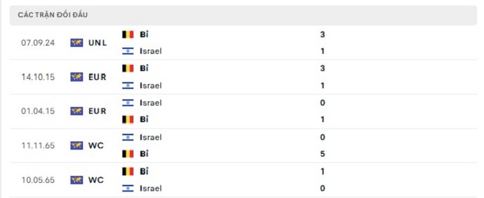 Trong quá khứ tuyển Bỉ vẫn luôn là cái tên khiến Israel phải khiếp sợ, bằng chứng là cả 5 lần gặp nhau gần đây của hai đội thì thắng lợi theo mốc kèo châu Âu của trận đấu đều thuộc về Bỉ. Điều này cũng đã nhận thấy được sự chênh lệch về mặt chuyên môn hay cả chất lượng về mặt đội hình của hai đội thực sự rất lớn, chính bởi lý do này mà hoàn toàn có thể tiếp tục đặt niềm tin vào Bỉ theo mốc kèo châu Âu của lần gặp nhau sắp tới của hai đội.
