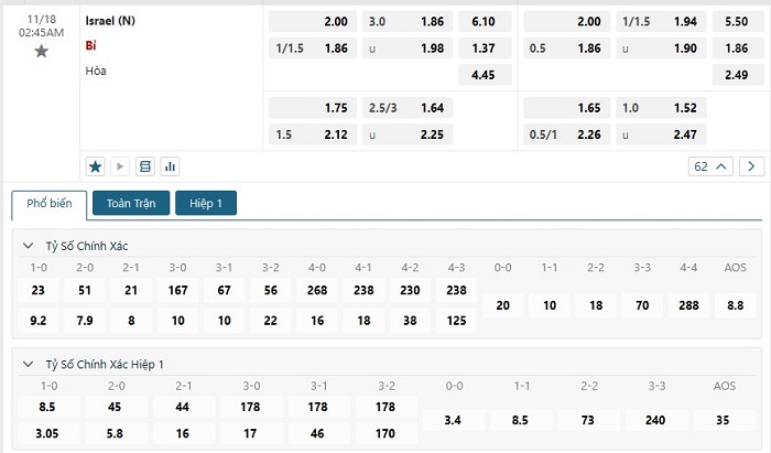 Soi kèo châu Á, kèo chấp Israel vs Bỉ