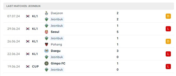 Lịch sử đối đầu của Jeonbuk vs Jeju United
