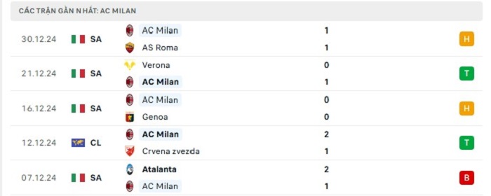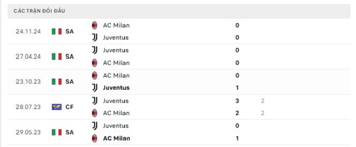 Bảng bóng đá trận đấu Juventus vs AC Milan