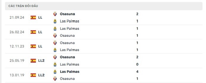 Trong tổng cộng 9 lần gặp nhau trước đây giữa Las Palmas và Osasuna cho thấy được sự cân bằng đáng kể, cụ thể là mỗi bên thắng 3 trận đấu trong khi cũng có tới 3 trận hai đội bất phân thắng bại, mùa này Osasuna có tỷ lệ hoà kèo châu Âu khá cao với tổng cộng 8 vòng đấu của họ đã bắt các đối thủ phải chia điểm cho mình, do vậy mà trận gặp nhau sắp tới đây của hai đội hoàn toàn có thể tiếp tục có thành tích bất phân thắng bại theo mốc kèo châu Âu.