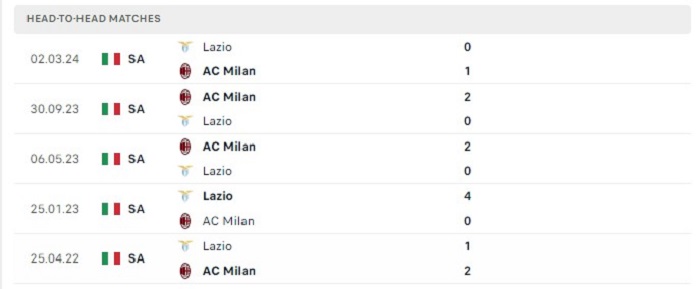 Phong độ gần đây Lazio vs AC Milan
