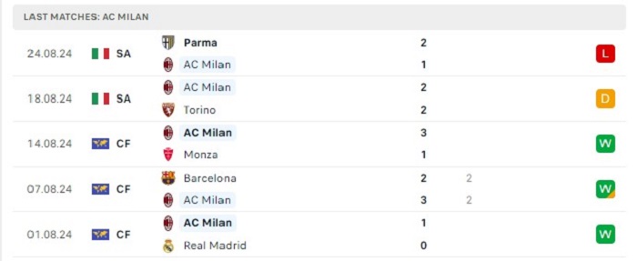 - Phong độ AC Milan