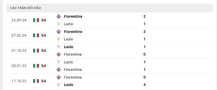 Phong độ gần đây Lazio vs Fiorentina
