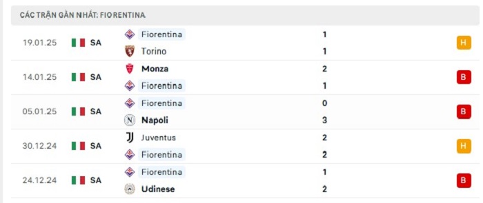 - Phong độ Fiorentina