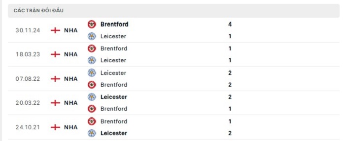 Thống kê có thể thấy được các trận gặp nhau giữa Leicester City và Brentford trong quá khứ thường xuyên có khá nhiều bàn thắng ghi được, điều này cũng đã thấy được lối chơi khá phóng thoáng mà hai đội đã tạo nên trước đây. Mùa này hàng thủ của cả Leicester City và Brentford đều không thể hiện được khả năng ghi bàn tốt nhất cho mình khi nhận khá nhiều bàn thua, chính vì vậy mà tỷ số của trận gặp nhau sắp tới đây của hai đội hoàn toàn có thể xuất hiện nhiều trong trận.