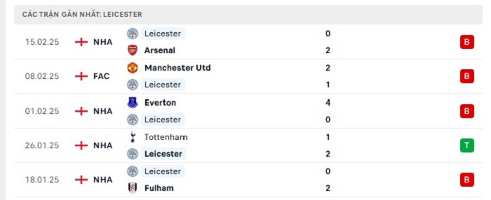 Phong độ gần đây Leicester City vs Brentford