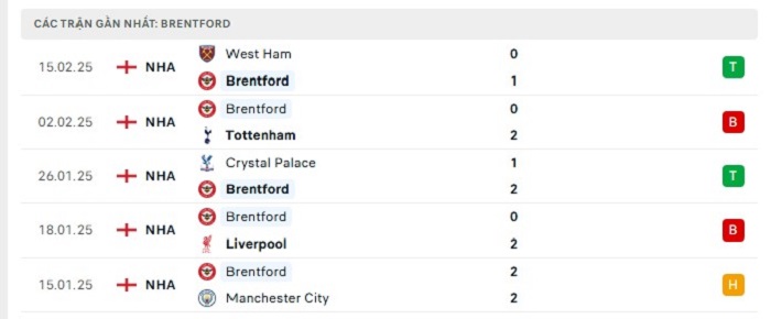 - Phong độ Brentford