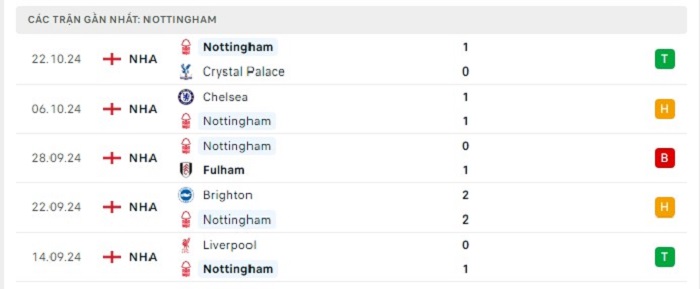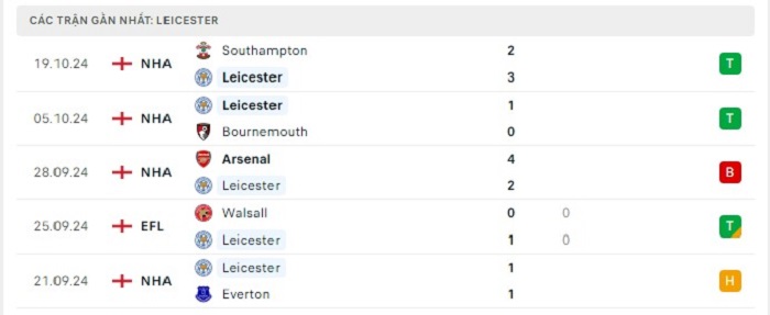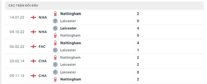 Bảng bóng đá trận đấu Leicester City vs Nottingham