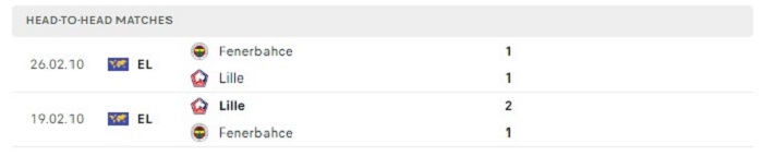 Lịch sử đối đầu của Lille OSC vs Fenerbahce