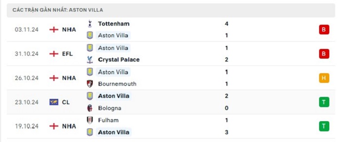 Bảng  bóng đá trận đấu Liverpool vs Aston Villa