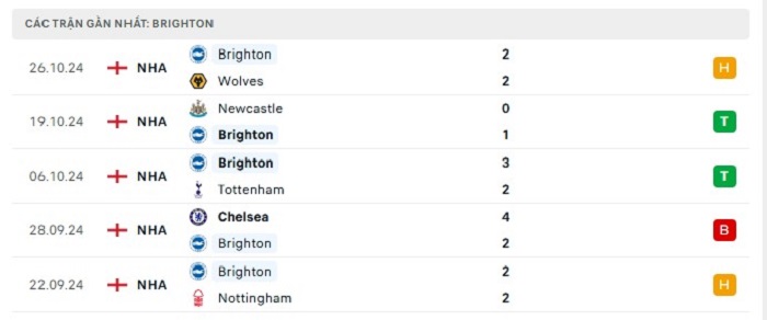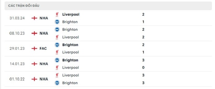 Mới đây nhất chính Liverpool cũng là cái tên đã đánh bại Brighton tại sân chơi Carabao Cup, điều này sẽ giúp cho tinh thần của đội chủ nhà cũng trở nên tốt hơn cho tham vọng của mình. Tại mùa giải năm nay Brighton mới nhận 1 thất bại theo mốc kèo châu Âu thì đó cũng chính là thất bại họ phải đi làm khách, do vậy mà với điểm tựa sân Anfiled đang có được tại vòng đấu thứ 10 này với Liverpool họ vẫn tràn đầy cơ hội để có cho mình một thắng lợi tiếp theo trước đối thủ này.