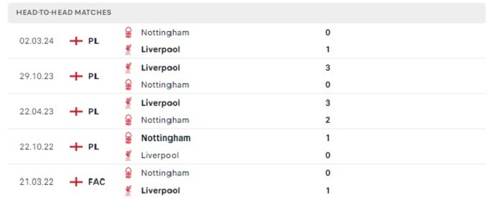 Những lần gặp nhau giữa Liverpool và Nottingahm trong quá khứ vốn cũng có khá nhiều bàn thắng ghi được cho cả hai đội, đặc biệt là trên sân nhà của Liverpool khi họ ghi được ít nhất 3 bàn trong 5 lần đón tiếp đối thủ này trước đây. Nottingham cũng sẽ có những cơ hội trong việc ghi bàn khi họ cũng có được cái duyên ghi bàn vào lưới Liverpool trong những lần làm khách trước đó với 4/5 trận đấu có được bàn thắng, do vậy mà có thể tiếp tục đặt niềm tin vào một trận đấu bùng nổ về mặt tỷ số của cả hai đội.