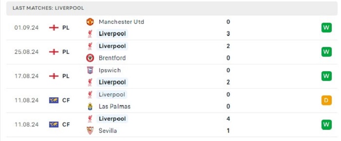 - Phong độ Liverpool