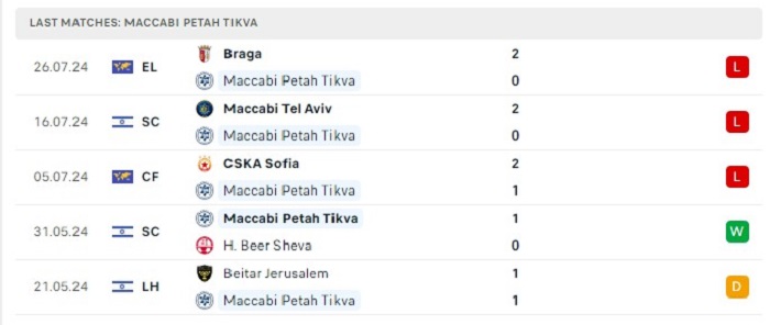 Phong độ gần đây Maccabi Petah Tikva vs Sporting Braga