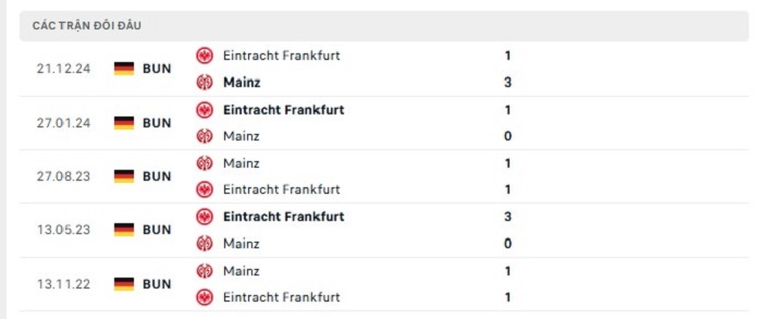 Phong độ gần đây Mainz vs Eintracht Frankfurt