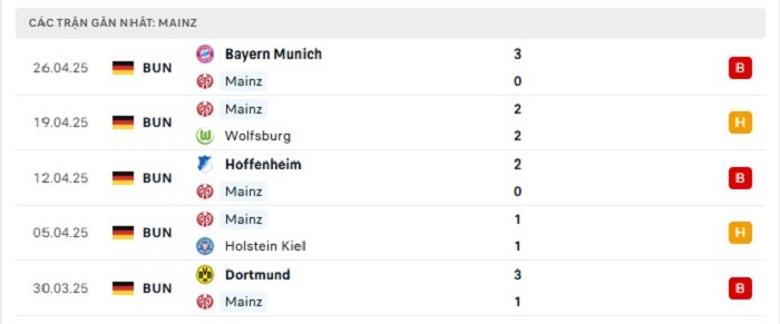 - Phong độ Mainz