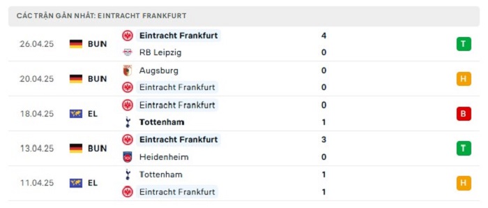 - Phong độ Eintracht Frankfurt